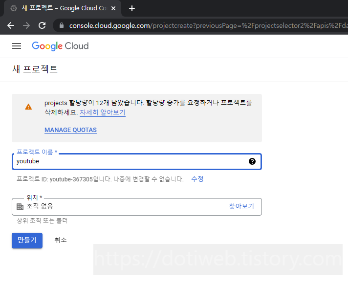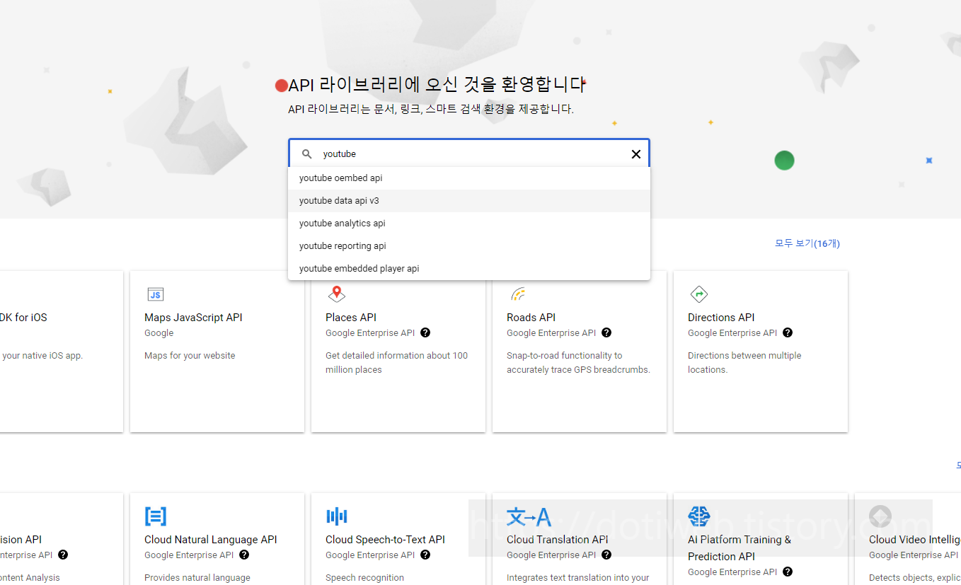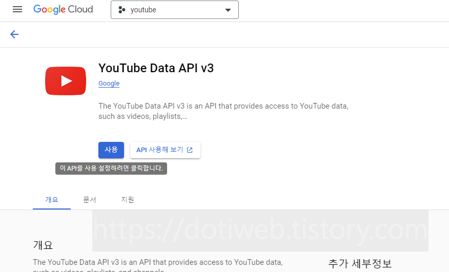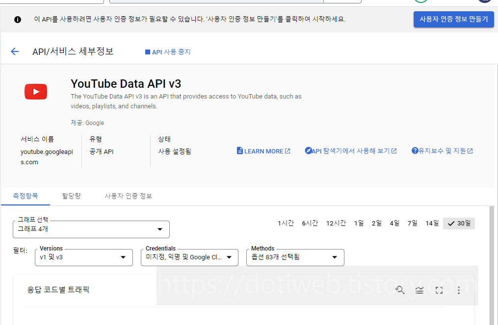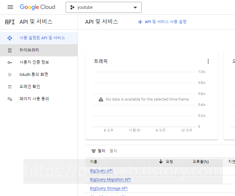 유튜브 채널 정보를 받기 위한 YouTube Data API v3 API키 발급받기