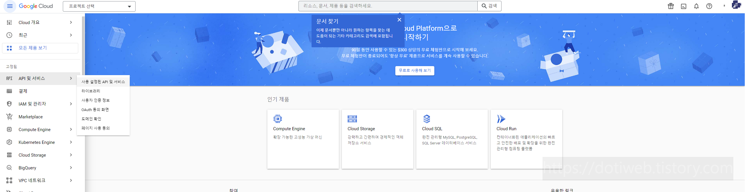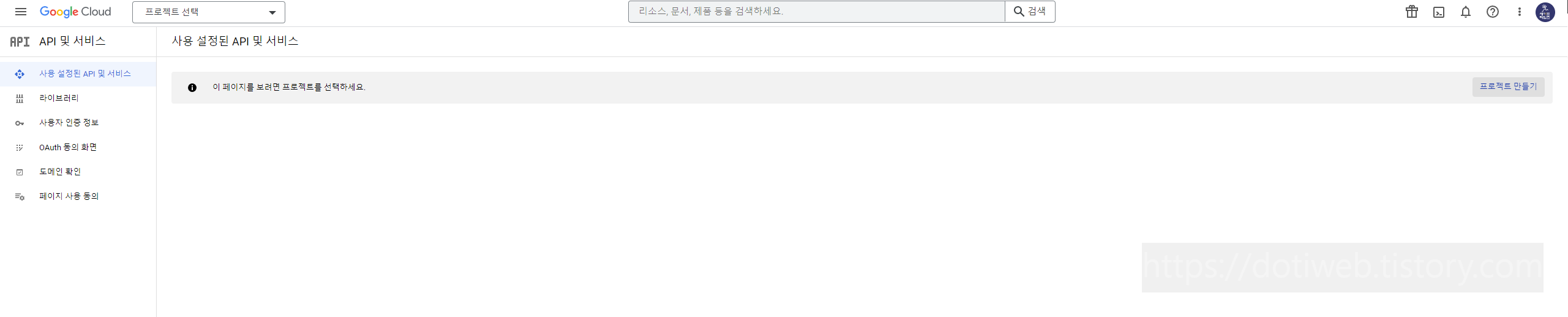 1. https://console.cloud.google.com/ 페이지에 접속한다.