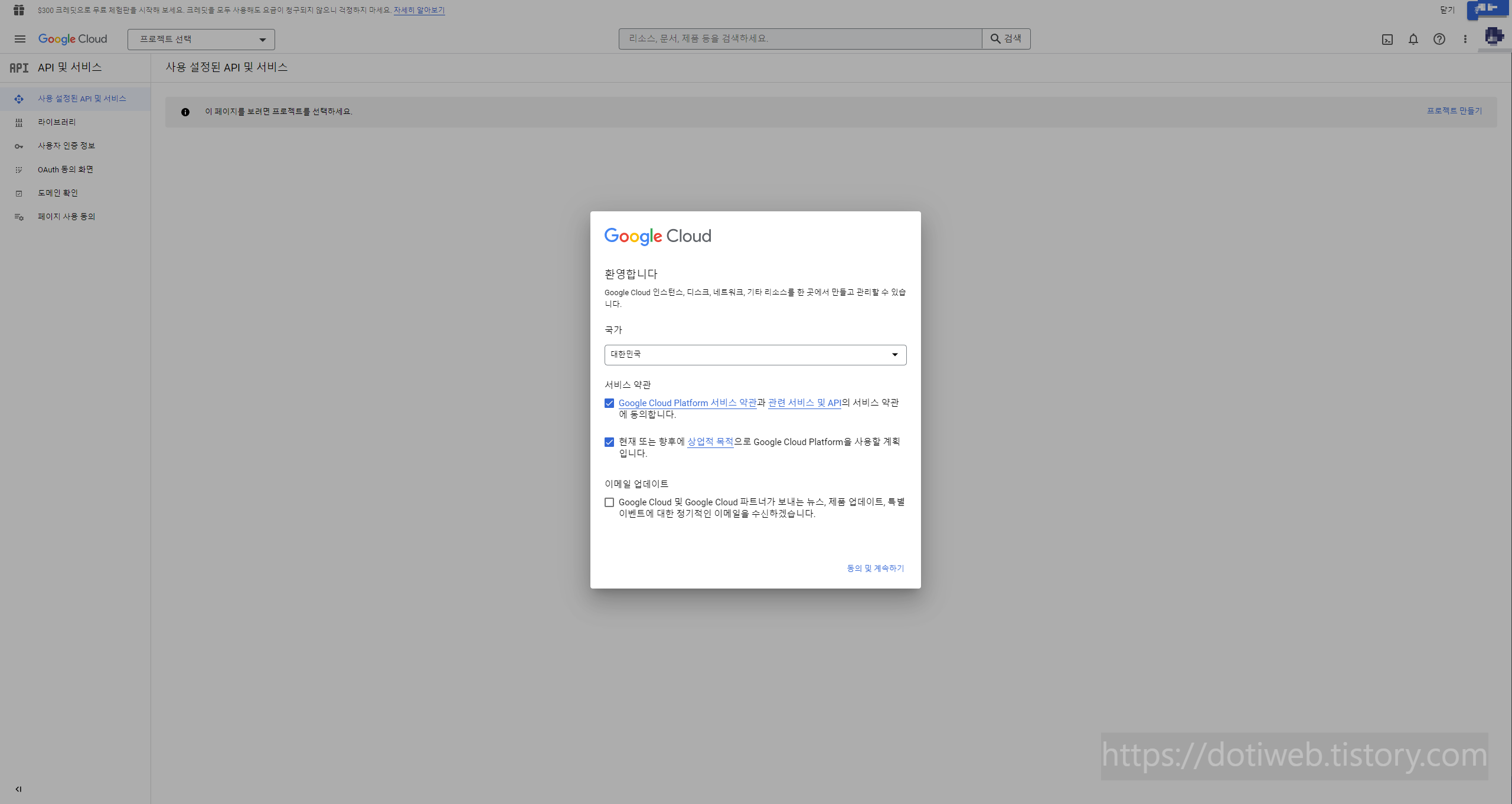 2. 서비스 약관에 동의하고 [동의 및 계속하기] 를 선택한다.